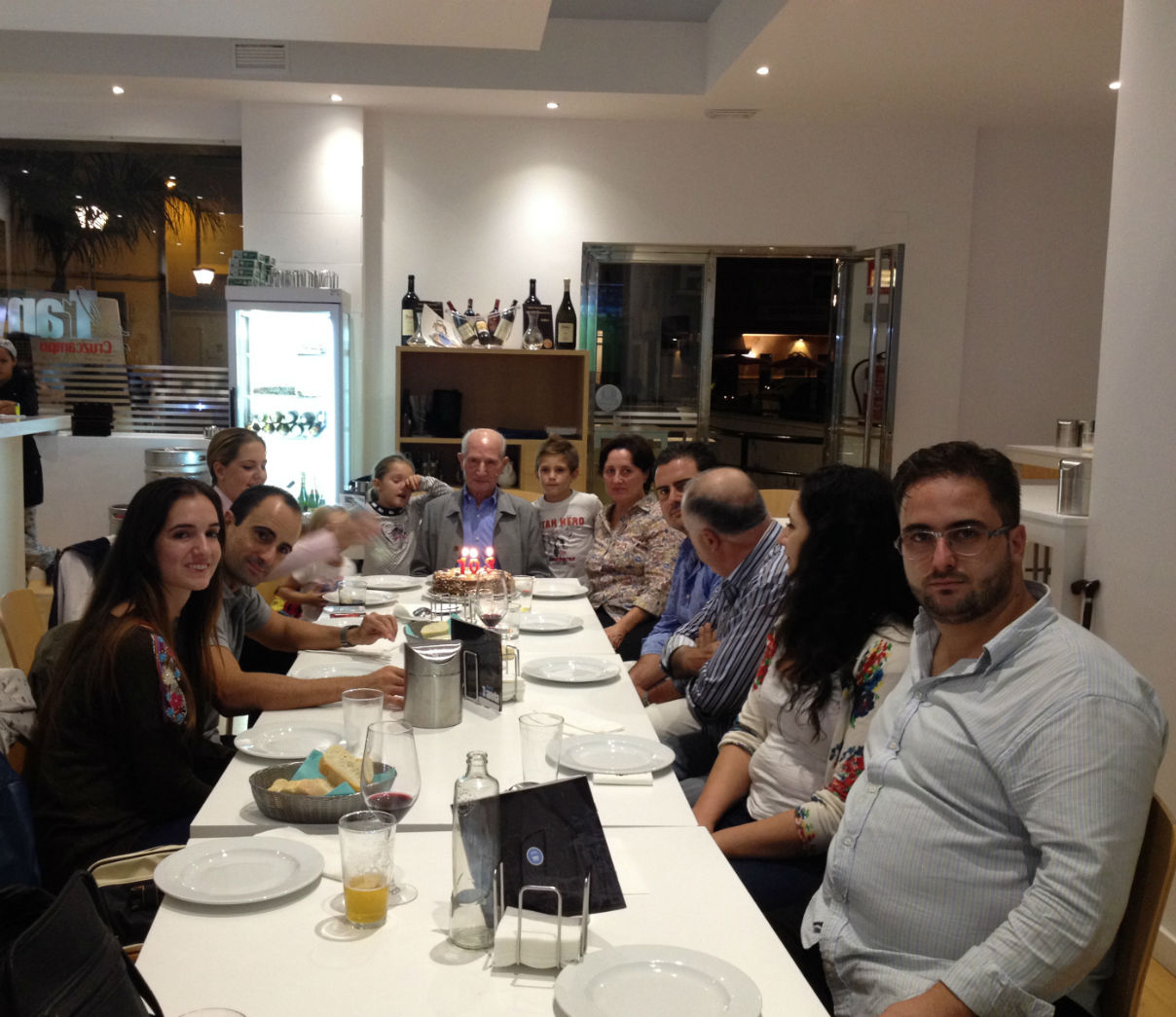 No crean que lo hizo en su casa, hasta la motrileña plaza de El Tranvía se desplazó para sentarse y cenar, como Dios manda, en el restaurante que regentaba su nieto Juan Rubiño. Durante más de tres horas departió con sus hijos, nietos y biznietos y comió el menú que el restaurante El Tranvía había preparado para la ocasión.